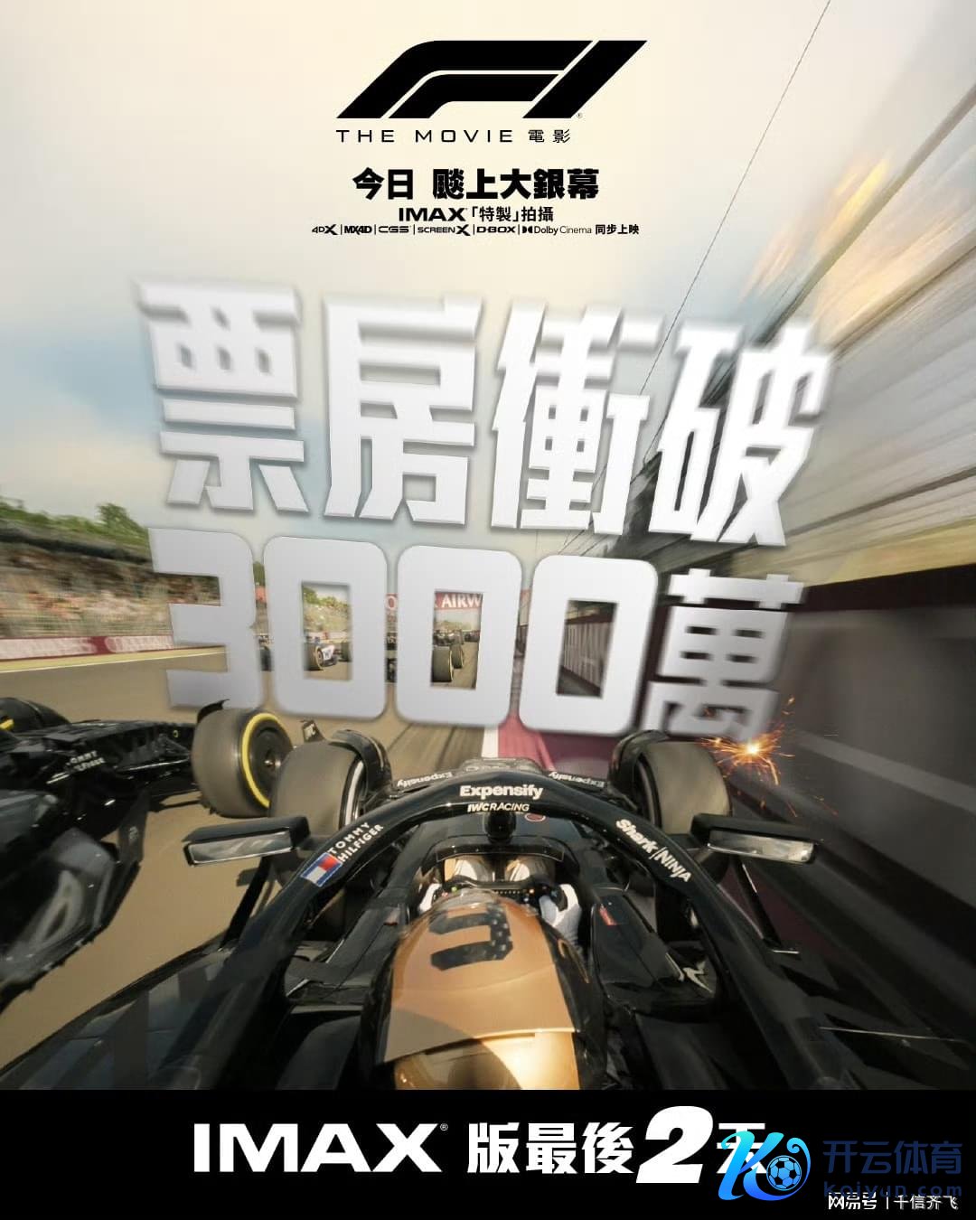 TOP2 约瑟夫·科辛斯基导演,布拉德·皮特、戴姆森·伊德瑞斯、凯瑞·康顿和托比亚斯·门斯基主演手脚片《F1:狂飙飞车》排片220场,当日票房95.7万港币(折算为12.2万好意思元),位列单日票房榜亚军,上映15天累计票房3253.6万港币(折算为414.5万好意思元)。