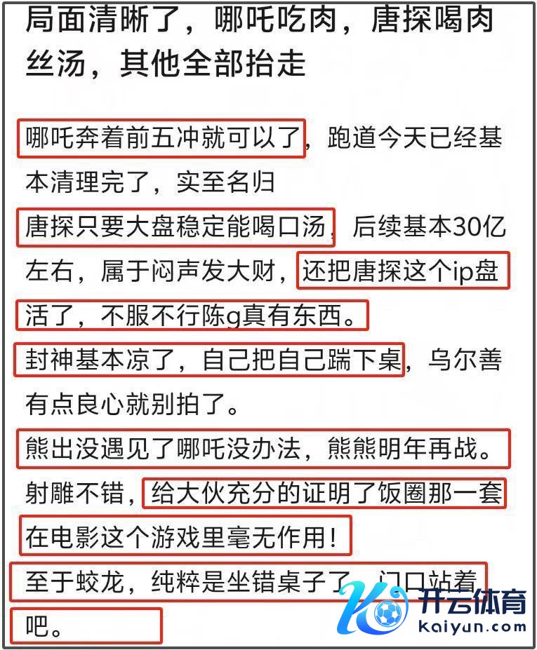 有网友一句话横蛮转头了六部大片近况,借用一下,放在2025年春节档电影形势之上正适值,即“《哪吒》吃肉,《唐探》喝汤,其他东说念主把筷子王人放下吧!”