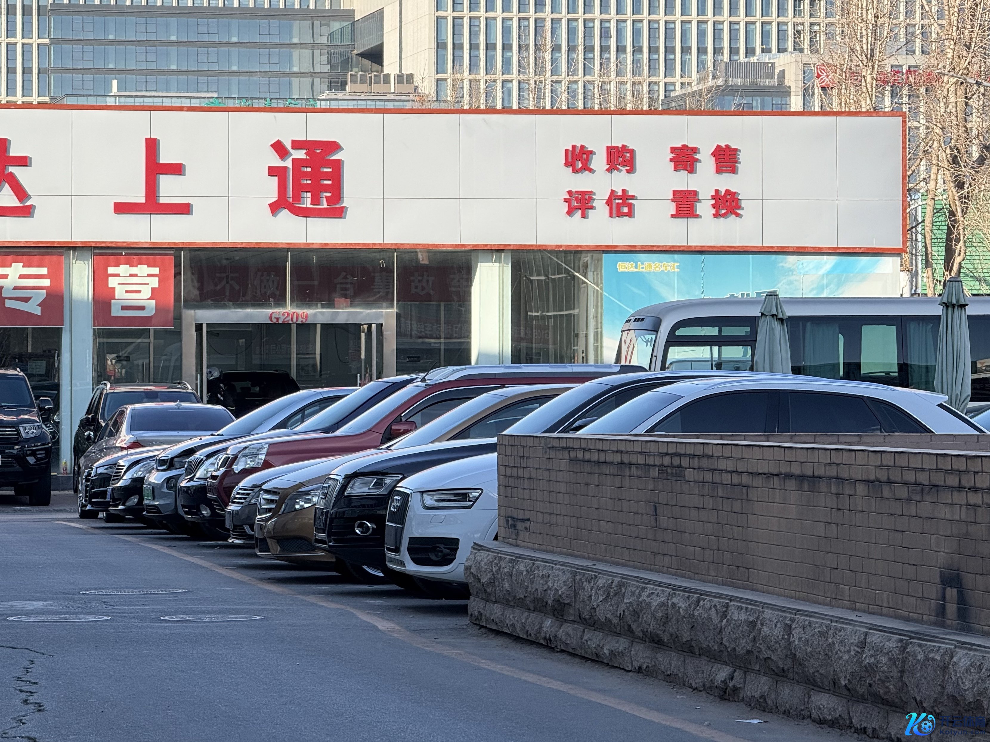 二手车商口号上写有“收购、置换”字样(时期周报记者拍摄)