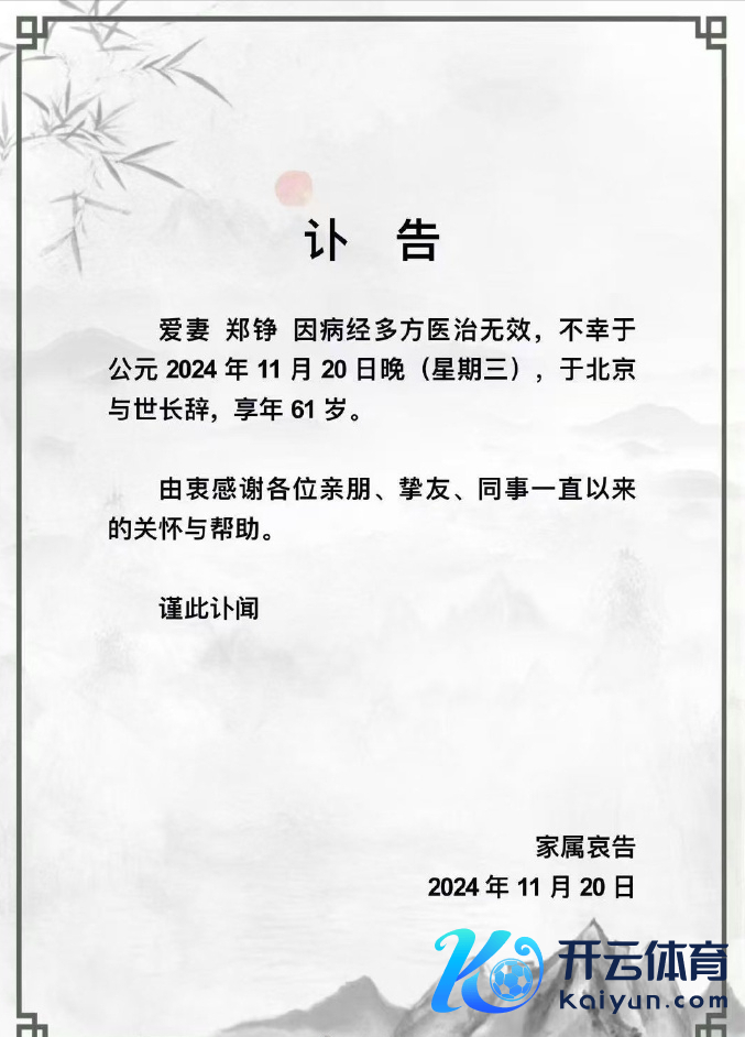 令东谈主缺憾的是,11月21日,郑铮的一又友圈却是丈夫发布的干系她的讣告。