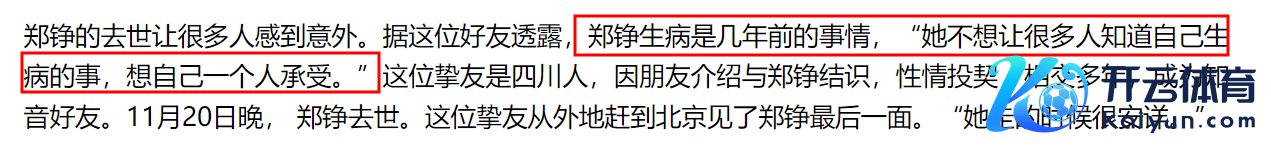 另一位郑铮生前石友则裸露郑铮也曾生病好几年了,但她生病的时刻不思让更多的东谈主知谈,一直很签订,很醉心活命。”
