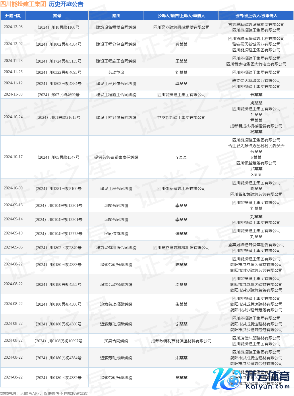 本站音讯,凭据天眼查APP清爽,近日公布了一则四川能投建工集团有限公司动作被告/被上诉东谈主的开庭公告,详备本色如下: