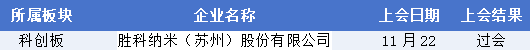 11月18日至11月22日历间,仅胜科纳米(苏州)股份有限公司禁受了上会审核,并成效通过了总共这个词审核经由。