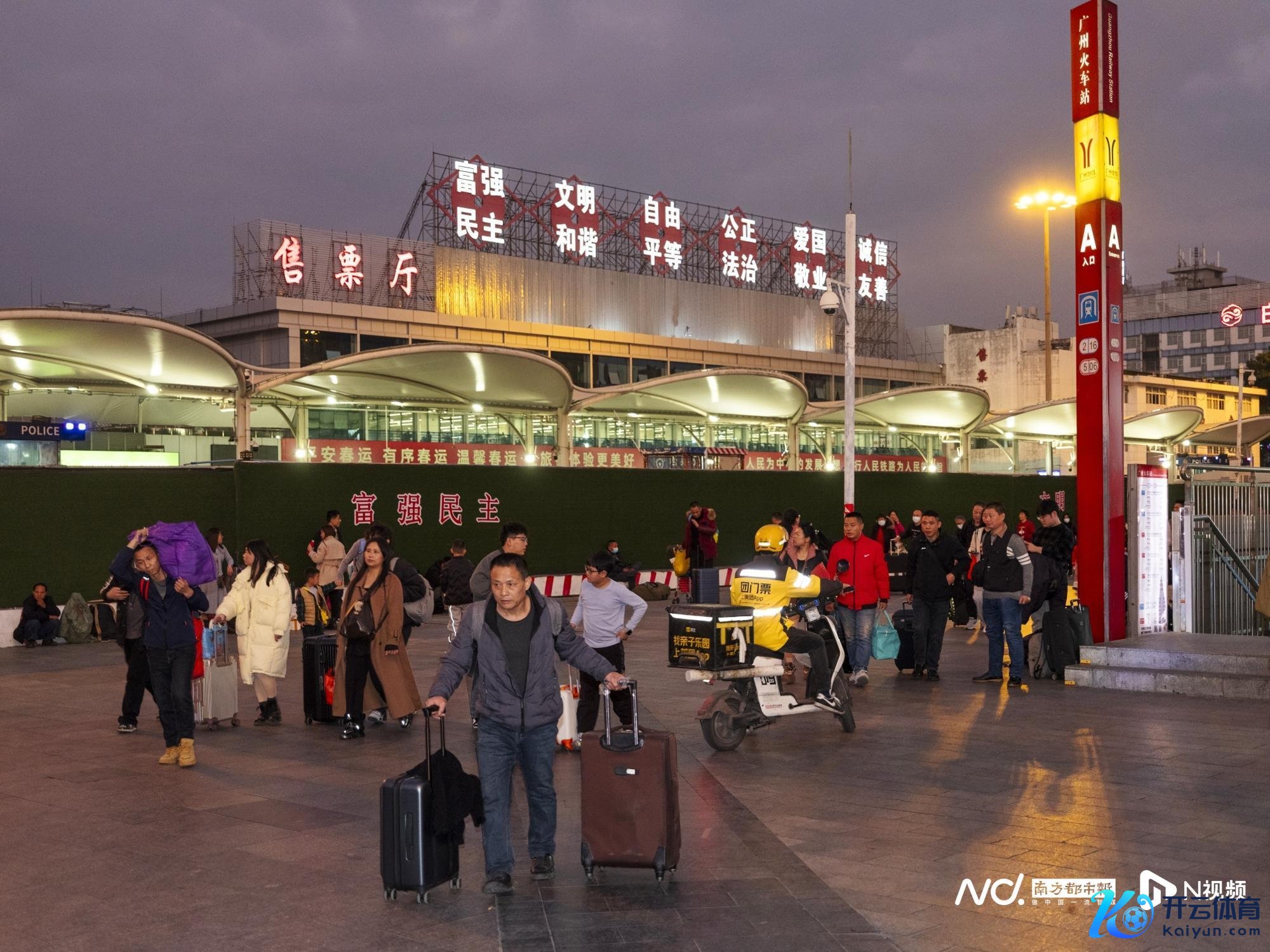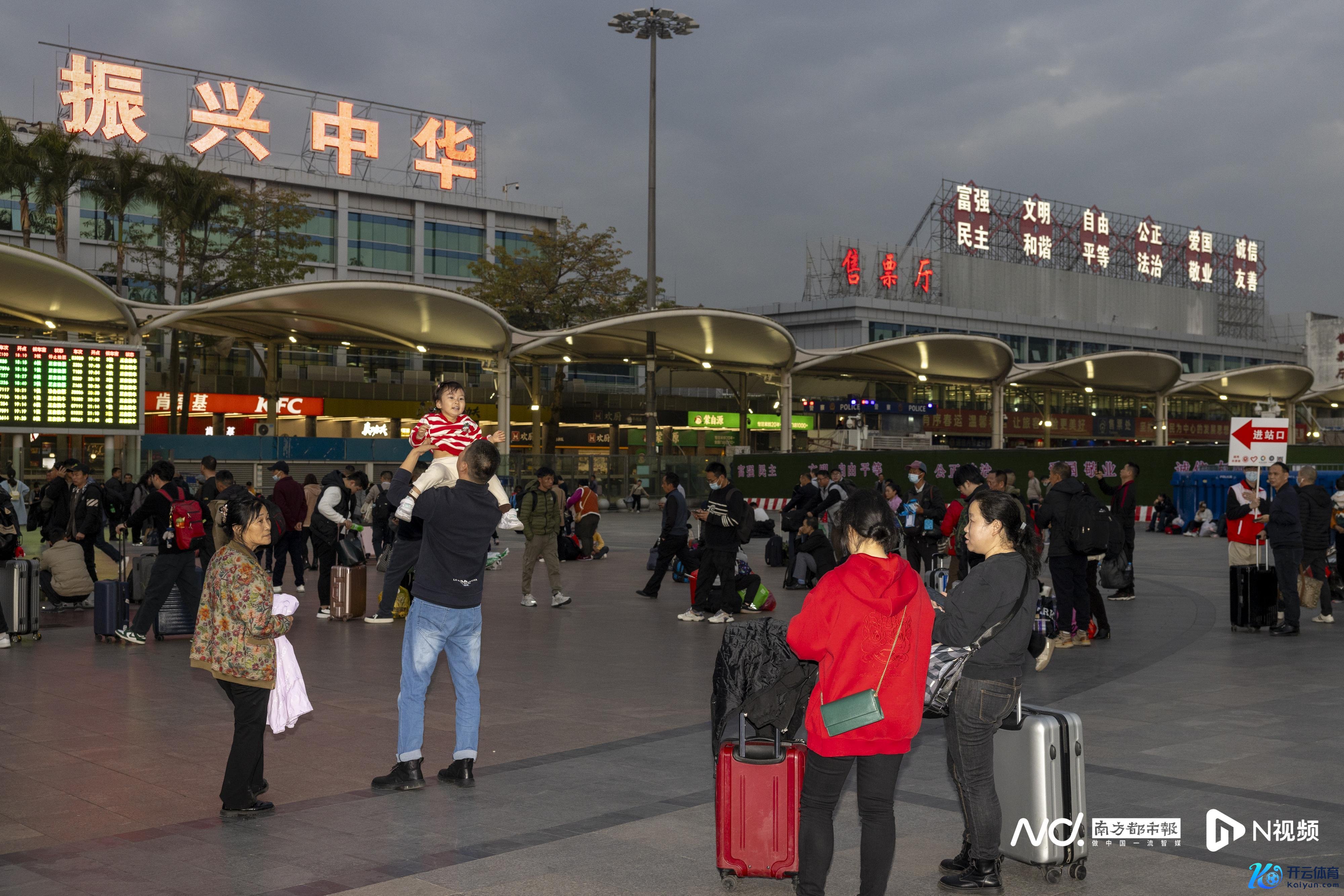 1月22日傍晚,广州站外广场。