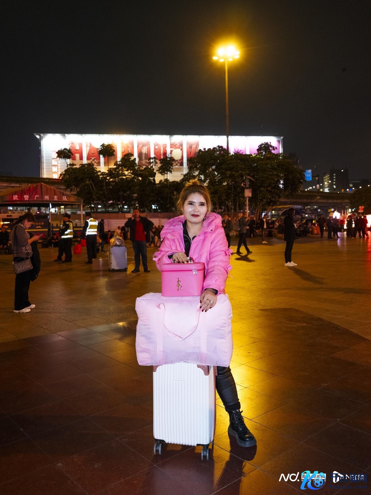 1月22日入夜,广州站外广场。