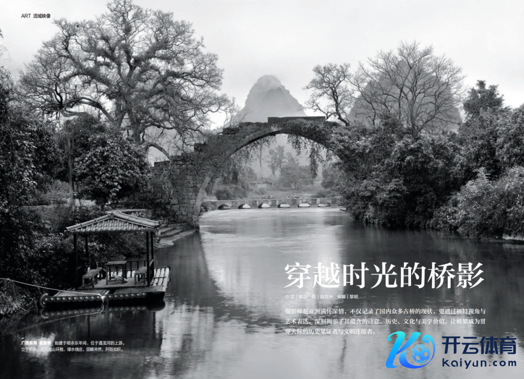 中国古桥自隋兴起,至宋郁勃,凝合着职业东说念主民的聪慧与艺术创造力,成为鸠合时空的文化纽带。诗东说念主义继、孟郊、白居易等以桥为媒,借景抒怀,创作出遍及情、声、景会通的诗篇。照相艺术兴起后,其纪实特质为桥的视觉诗化提供了新的抒发旅途。赵亚洲怀揣对古桥的深情,以专题照相“桥”定格其眨眼间,不仅记载古桥近况,更通过专有视角与艺术抒发,深远揭示了其蕴含的诗意、历史、文化与好意思学价值,让桥梁成为流通天空的历史见证者与文静鸠合者。