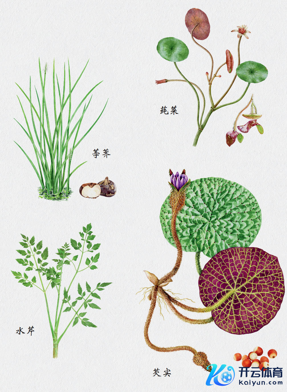 鱼虾螺蚌,莼藕菱芹,这些鲜好意思的水产好菜,一直柔润着江南东说念主。其中,水八仙是江南最具代表性的乡土景况。水八仙是指莼菜、菰、莲、水芹、芡实、慈姑、荸荠和菱,这八种水生植物以各自专有的方式与味说念,浸润在农东说念主耕种的犁痕中,流淌在文东说念主骚人的诗行里,更沉淀在江南东说念主代代相传的味蕾顾忌深处。