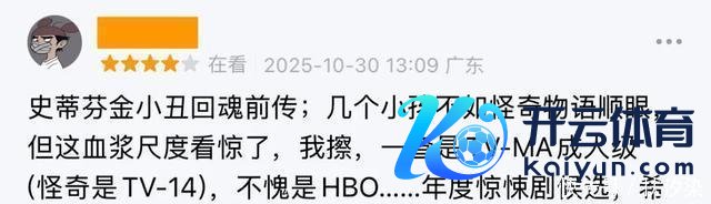 第一集开场,一个叫马蒂的小孩,过生辰。 但他一又友全放了他鸽子。 他一气之下离家出走,大雪天,一个东说念主溜进电影院。 出来后,他在路边拦车。 一辆车停驻了。车里开云体育,是“完好的好意思式中产家庭”—— 慈爱的爹,怀胎的妈,有限定的姐姐,嚚猾的弟弟。 他们温雅地让马蒂上车。 然后,脑怒启动不合劲了。 车里的收音机,正播着核发射可能导致“基因变嫌”。 阿谁爱静的姐姐,顷刻间掏出一盒“肝脏”,用手指沾着血,放鼻子下面闻。 阿谁嚚猾的弟弟,启动诡他乡拼单词:“欺骗”、“逝者”、“蛆虫”。 马蒂慌了,喊着要下车。 那家东说念主脸上的“慈爱”面具,启动裂了。 他们无视马蒂,反而启动集体高喊一个词: “ O-U-T!O-U-T!O-U-T! ” 阿谁怀胎的妈,肚子顷刻间启动豪恣蠕动。 下一秒 (我得教唆你,这剧是TV-MA,未成年禁看,表率拉满) 一派血肉腌臜。 一个“东西”从她肚子里爆了出来 。 那不是婴儿。那是一个 长着翅膀的豪恣怪物 。 它还连着脐带,就在车里乱飞。 而那一家四口,在血泊里,笑得一脸幸福。 怪物,冲向马蒂。 镜头一黑。马蒂,失散。 这,等于《懦夫回魂:宽待来到德里镇》的开场。 很是钟,把“温馨”撕得翻脸。