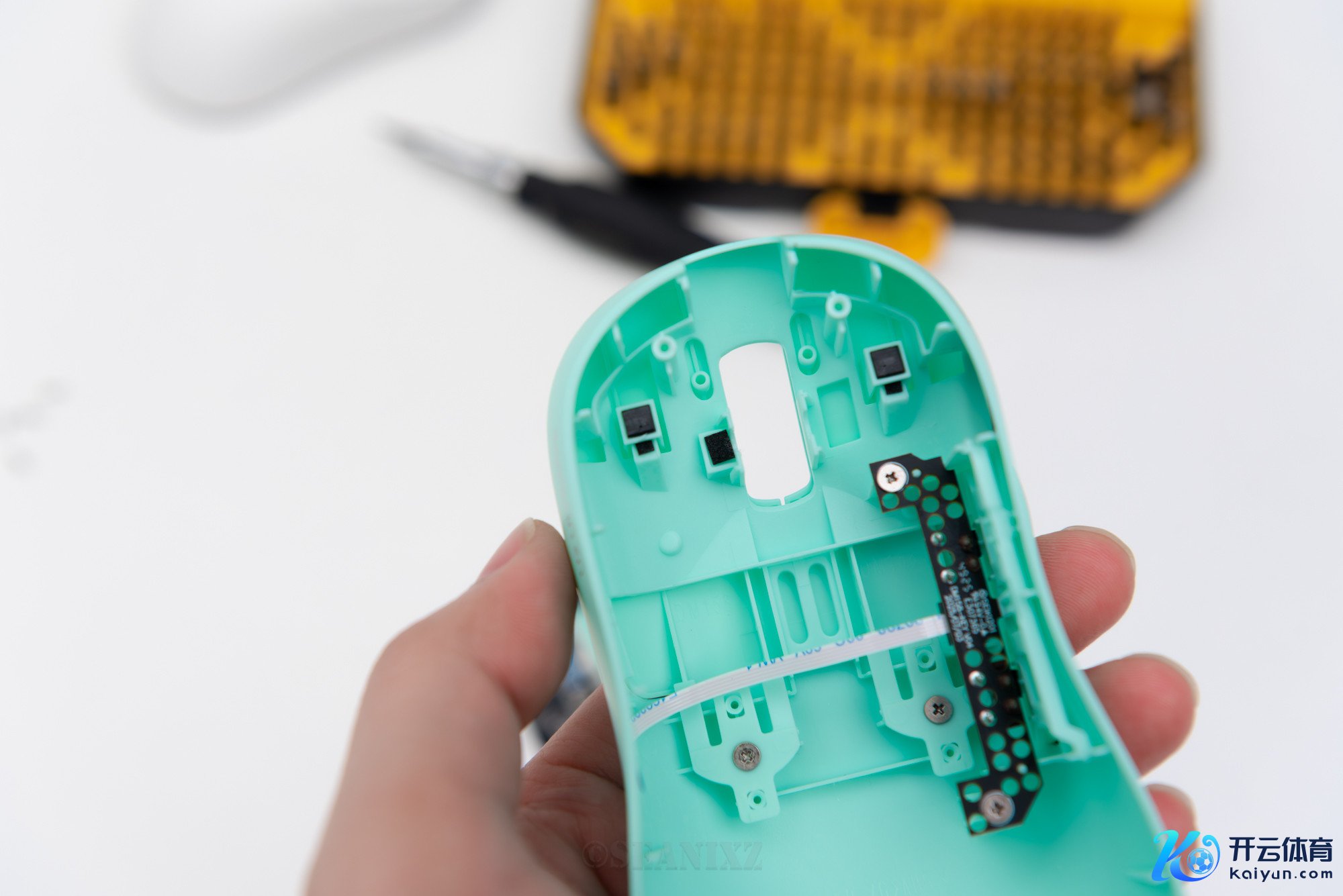 主板布局紧凑,散布均匀,两款的传感器均为原相PAW3395Ultra,接济至高 双8K Hz 的文牍率,属于超旗舰定位,精度普及至10DPI/档,最高可达30000DPI,还接济超频至42000,参数怪兽。