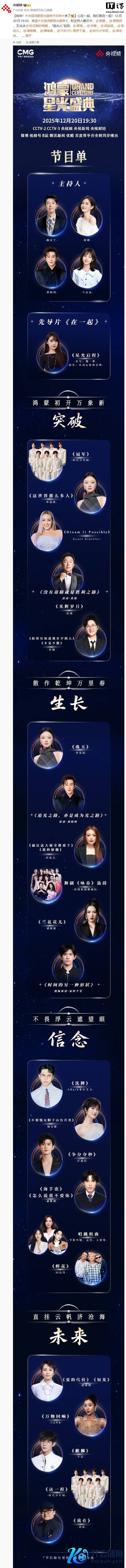 IT之家 12 月 20 日音讯开云体育,央视《鸿蒙星光盛典》将至当天 19:30 在 CCTV-2、CCTV-3、央视频、央视新闻、央视财经等 200 余家平台和账号同步播出,官方现已公布节目单。