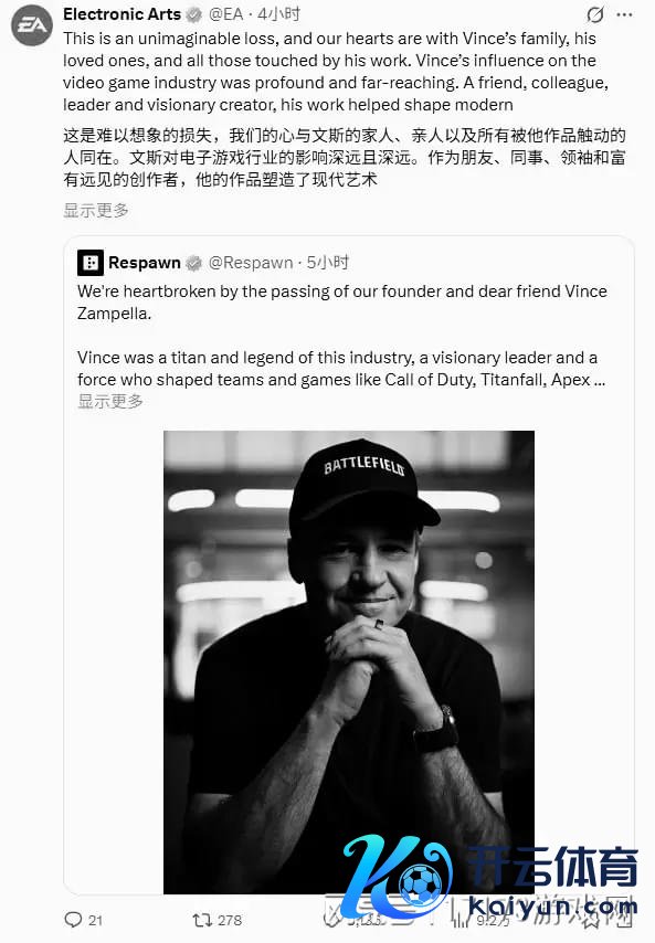 TGA制作主说念主杰夫·基利在外交媒体上写说念:“文斯是一个超卓的东说念主,他心中永恒是个玩家,同期亦然有远见的高管。”