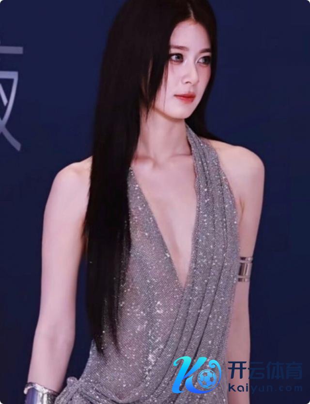 此次她径直烧毁了以往的邻家感,一袭银色亮片挂脖长裙,将纤细的腰肢和开通的肩颈线勾画得恰到克己。