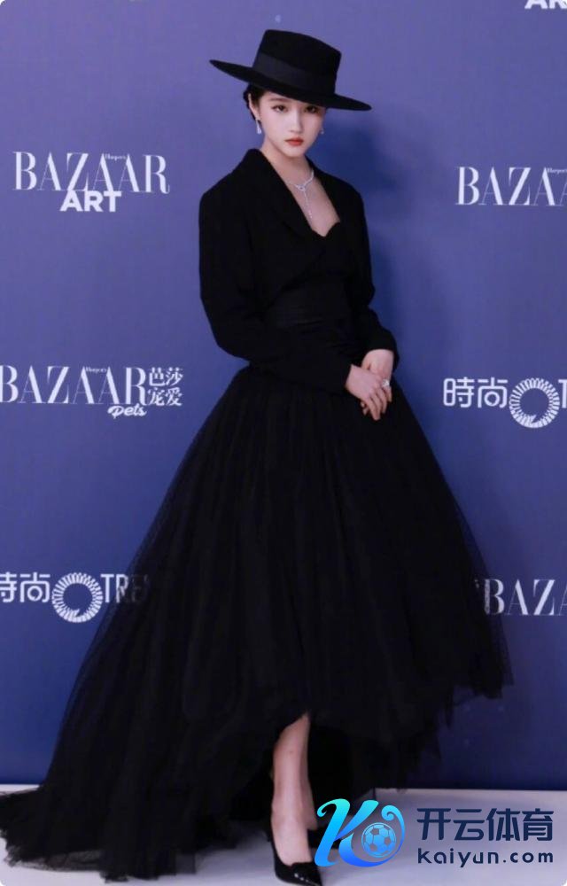 她身着一条剪裁私有的玄色纱裙,重重叠叠的裙摆既有纱裙的柔好意思,又带着几分酷帅感。