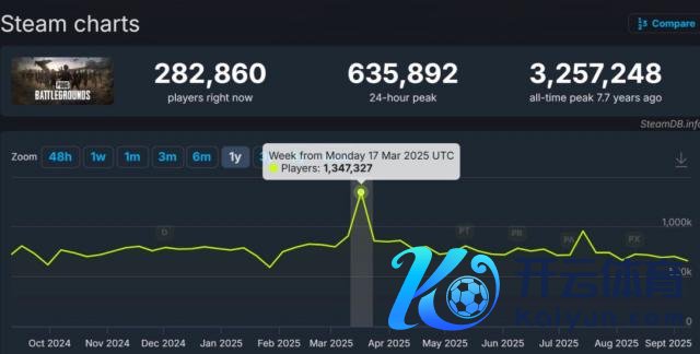 此外,把柄 SteamDB 的统计,相较几年前抓续走低的在线玩家东谈主数,如今靠着约束打磨玩法且与更多 IP 伸开跨界联动的《PUBG》端游,曾经能将日活东谈主数自如看守在六七十万阁下,碰上玩家矜恤较高的联动,这个数据以至能冲一冲百万量级,虽远不足当初刚上线时的巅峰气象,但依旧能常年稳居 Steam 平台在线东谈主数榜的前三,影响力可见一斑。