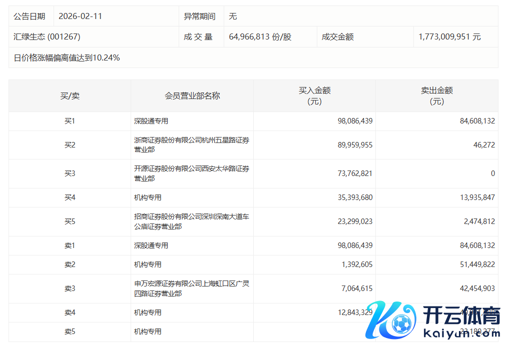 汇绿生态本日涨停,有3家机构专用席位净卖出1.00亿元汇绿生态本日涨停,有3家机构专用席位净卖出1.00亿元