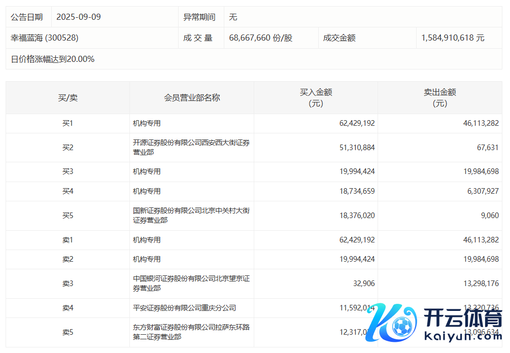 幸福蓝海当天20%涨停,3家机构专用席位净买入2875.24万元幸福蓝海当天20%涨停,3家机构专用席位净买入2875.24万元