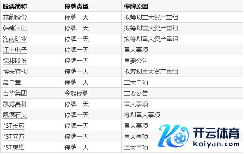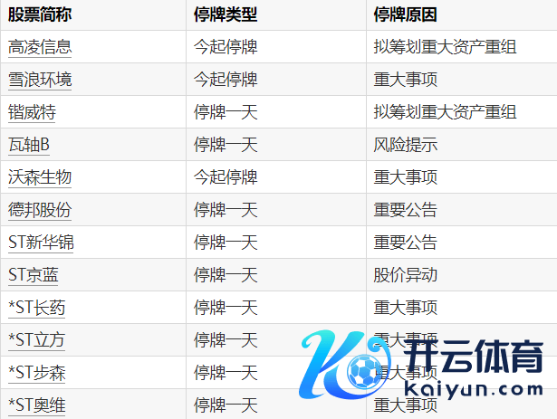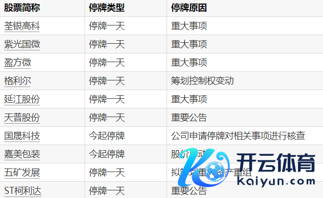 A股停牌领导:10股本日停牌开yun体育网A股停牌领导:10股本日停牌