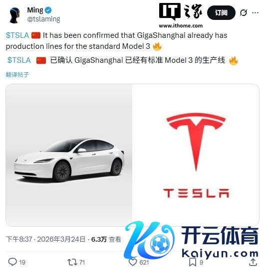 据爆料,特斯拉 Model 3 范例版行将登陆中国市集,上海超等工场已建成关联产线。新车在树立上作念了多项精简,CLTC 续航 480 公里,起售价有望下探至 20 万元以内,或将进一步搅拌主流电动车市集。