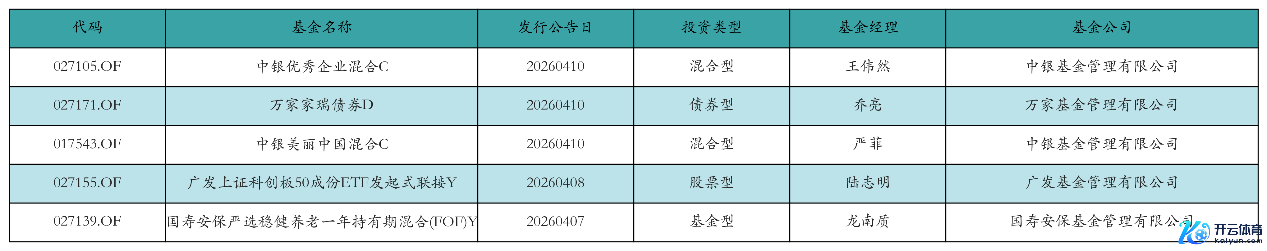 上周有5只新基金刊行,永别为:中银优秀企业搀杂C、万家家瑞债券D、中银绚烂中国搀杂C、广发上证科创板50成份ETF发起式协调Y、国寿安保严选寂静养老一年抓有期搀杂(FOF)Y,确定见下表: