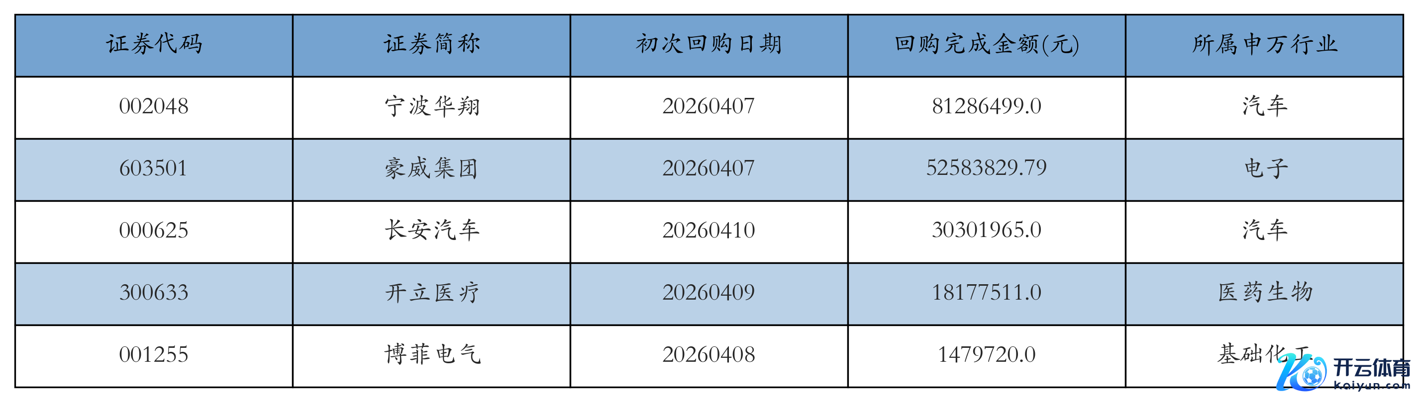上周共有6条开动本质回购公告,其中本质金额最多的5条公告为: