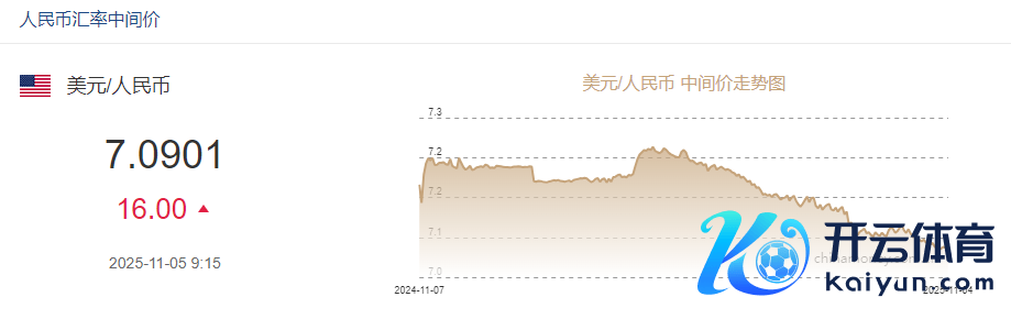 11月5日东说念主民币对好意思元中间价报7.0901元 下调16个基点